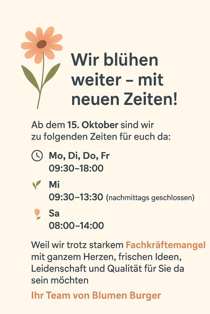 💐 Wir blühen weiter – mit neuen Zeiten!